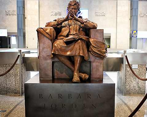 Photograph: Life-sized statue of Barbara Jordan in the Barbara Jordan Terminal in the Austin-Bergstrom International Airport. Created by California artist Bruce Wolfe. (Courtesy of the City of Austin.)