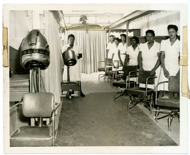 Franklin Beauty School students at hair dryer stations in Houston, Texas. (Image by Cliff Richardson and part of the Franklin Beauty Schools, Inc. Collection at the Houston Metropolitan Research Center, Houston Public Library, and available on the Internet and included in accordance with Title 17 U.S.C. Section 107.)